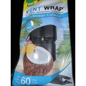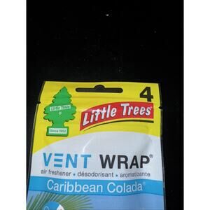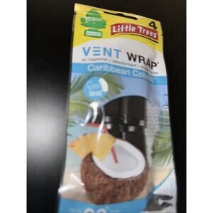 The Little Trees Vent Wrap Air Freshener Caribbean Colada is a set of four factory-sealed air fresheners designed to be placed in car vents. Made by Car Freshner and featuring the Caribbean Colada scent, these vent wraps are a convenient and easy way to freshen up your car's interior. With the brand's reputation for quality and the included set of four, you can enjoy the pleasant scent of Caribbean Colada wherever you go.