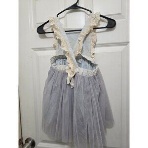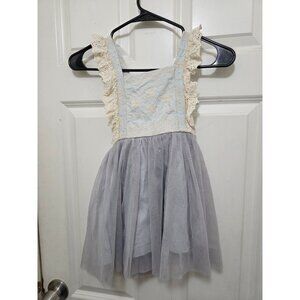 Little Trendsetter Girld Lace & Tulle Party Dress Ruffle Straps Light Blue/Cream