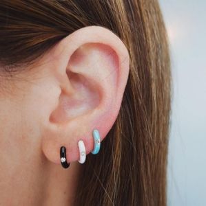 Little White Gold Hinged Hoops Enamel Hoop Earrings Rhinestone CZ Crystal New