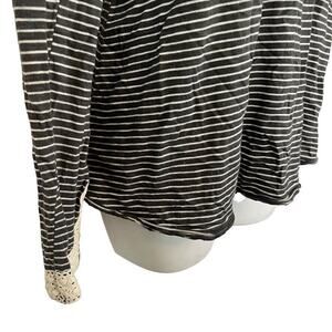 Little Yellow Button Anthropologie Striped Long Sleeve V-Neck Gray Knit Top M