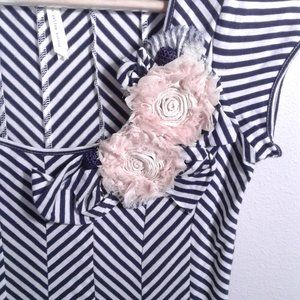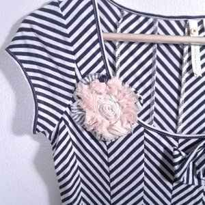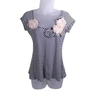 Vintage feminine style from Little Yellow Button - Anthropologie. Dark navy blue and white chevron pattern shirt with fabric flower embellishments. Great condition.