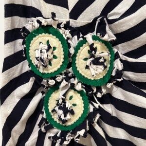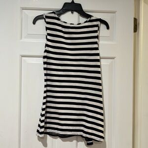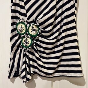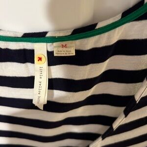 Little Yellow Button (sold at Anthropologie). Size Medium. Navy and white stipe with gathering. Appliqué at gathering. AALL STAIN AS SHOWN IN PHOTO.