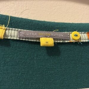 Little Yellow Button - Teal Long Sleeve Women's Top with Patterned Hem- medium