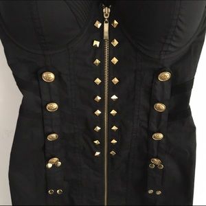 Sexy Black corset-like dress with gold button hardware detail. Figure flattering dress.