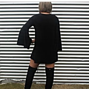 Solid scoop neck black dress with one of falls hottest trends, bell sleeves. Non-sheer. 96% Bamboo, 4% Spandex.