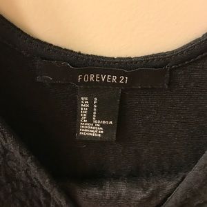 Black mini Forever 21 dress. Very tight fitting and comes up above mid thigh. Have a subtle black flower pattern.