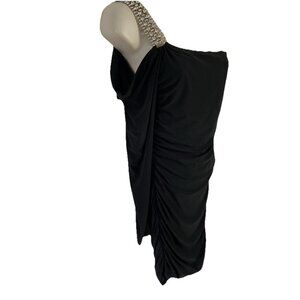 Little black dress sz L Cocktail Evening Ruched One Shoulder rhinestone Deb