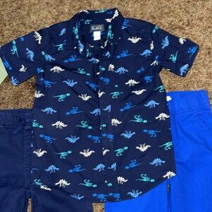 Dinosaurs rule around my house - they just don’t get worn!! These 2 shirts and 3 pants will give you at least 4 different outfits for your little man. I know the blue shirt was worn once for school pictures, but the pants and the green shirt were never worn by my grandson before he outgrew them. See tags for brands and sizes and feel free to ask me any questions! I also have little boy shoes and a matching shirt and short set in my closet so bundle and save!