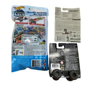Great little bundle, hot wheels straight track, matchbox Honda ridgeline, and a monster jam truck. Great little toy set for any little kid. please see pics some packaging has numbers on them from inventory only, set includes one hot wheels city track piece, one matchbox car and one monster jam truck. Pictured