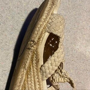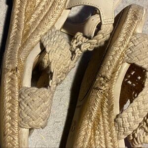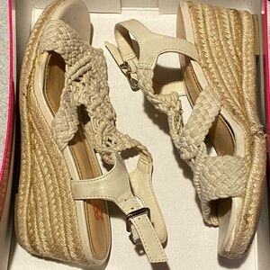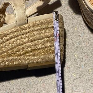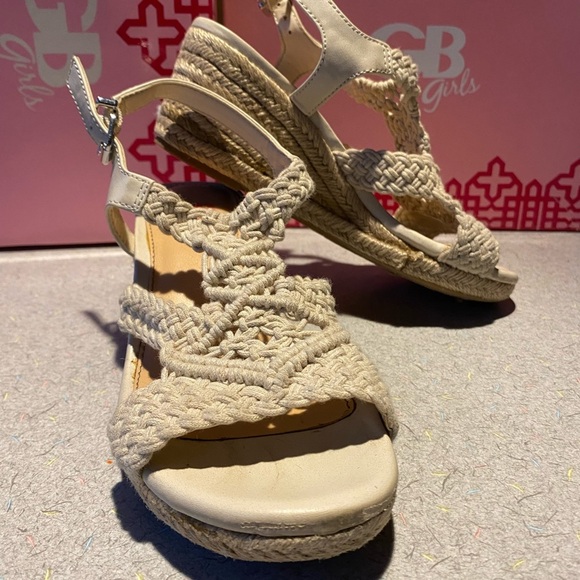 Little girls size 1 wedge sandal Cream color Approx 2.5 “ heel EUC Some fraying where the trim meets- pictured