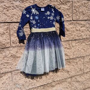 Little girls super cute, sparkle snowflake design holiday dress with long sleeves and a type layered bottom.