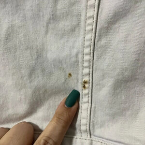 Little girls white denim jean jacket from H&M size 8-9 small flaw rust mark on back of jacket I haven’t tried to clean for fear of ruining but could Bleach out. No tips or tears smoke free home.