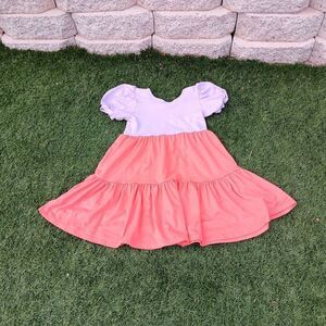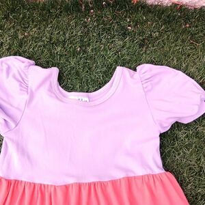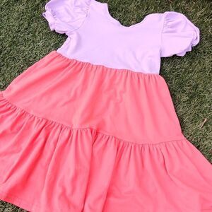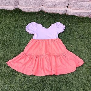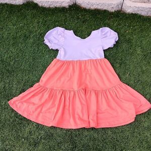 Girls super cute, comfortable, twirl tier dress, two colored (purple & orange), with bell sleeves.