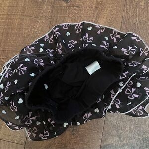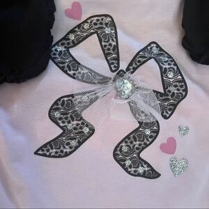 3D jewel, tulle, and sparkly circles and hearts adorn the front