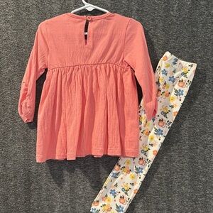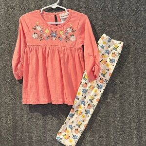 Little lass Pink, coral floral embroidered toddler girl, top and leggings set 3T