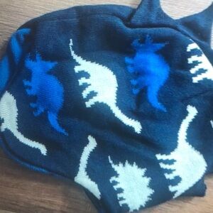 Little me dinosaur print winter beanie hat with spikes navy blue kids knit cap