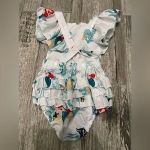 Not sure of brand, there are no tags size 70 means 6-12 months in US. Super cute and thin for the summer months!