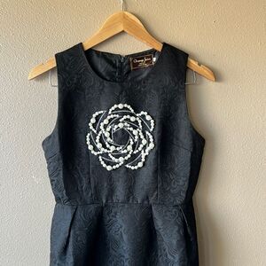 The perfect little black dress is sleeveless with pearl accents on the front and bottom. An Aline fit. Size medium. Extremely well made with a gorgeous fit. Medium/ Thick Material. Neckline: High Neck Sleeve Length: Sleeveless Apparel Length: 39 Inches Dress Length: Above Knee Length Fabric Description: Crepe. Care: Dry Clean Only Japanese brand, MSRP $420 brand new