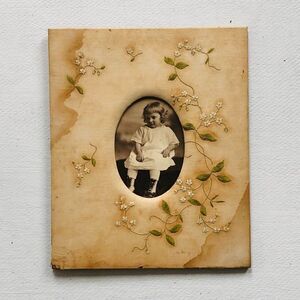 Little Girl Printed Photograph Picture Embroidery Frame Antique 19th Сentury