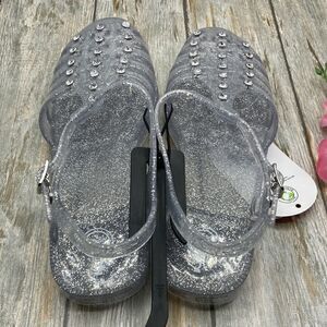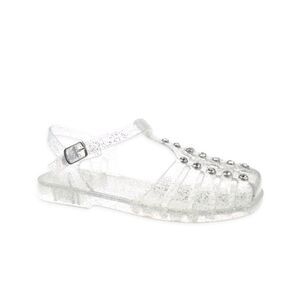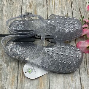 Little Girl's Crystal Jelly Silver Glitter Studded Sandals Shoes Size 2