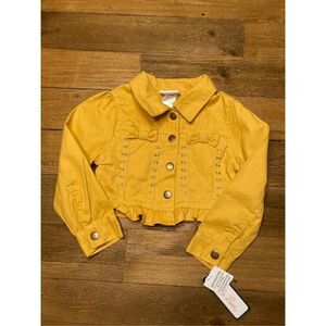 Little Lass 3T NWT mustard yellow cropped denim jacket ruffles bows