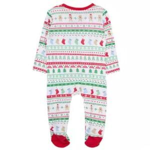 Little Me Holiday Red and White and Green Fair Isle Footie NWT size 6M EUC