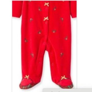 Adorable velour footed one piece Christmas outfit. plaid ruffle accents on feet and ruffle collar. Brand New from Nordstroms