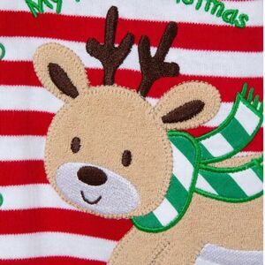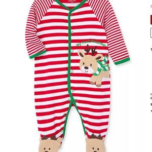 Little Me Red and White stripe Reindeer snap-front footie 1st Christmas NWT 6 m.