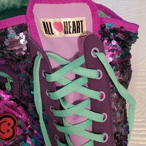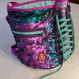 Purple and green sequence bag with drawstring