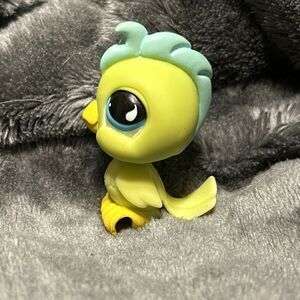 Littlest Pet Shop Authentic # 858 Green Sportiest Cockatoo Bird Blue Drop Eyes