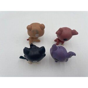 Littlest Pet Shop Dog Cat Bear Wolf Figures Set Of 4 Brown Black & White Purple