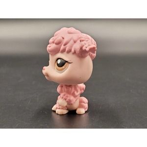 Littlest Pet Shop LPS Pink French Poodle Hasbro Dog Figure Brown Eyes