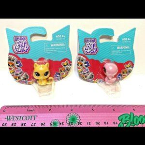 Littlest Pet Shop Lot of 2 Pets: Yellow Cat & Light Purple Duck. LPS. Mini-Scale. Hasbro. New NIP. Age 4+.