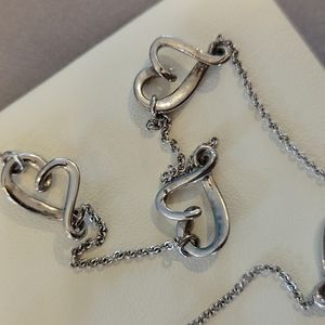 The 5 hearts are secured to the chain not dangling like a charm. The hearts remind me of an infinity sign the way the bottom loops around. Each of the 5 hearts are half encrusted with the diamonds.