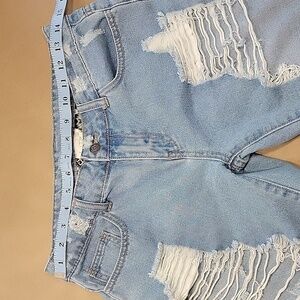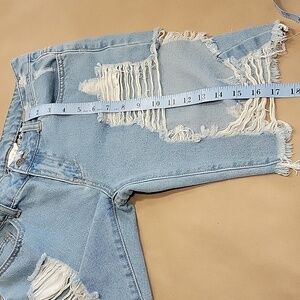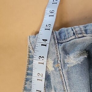 Litz Size S, Destroyed Denim Shorts, Bermuda Length, Gently Used Condition. Factory Whiskering, Fading and Destroying. Great Condition. Classic 5 Pocket Styling with Zipper Fly and Button Closure. Please refer to measurements in photos to ensure proper fit.