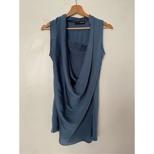 Liu Jo Italian Sleeveless Blue Satin Wrap Blouse, Size IT 40/ US Small, MP $248