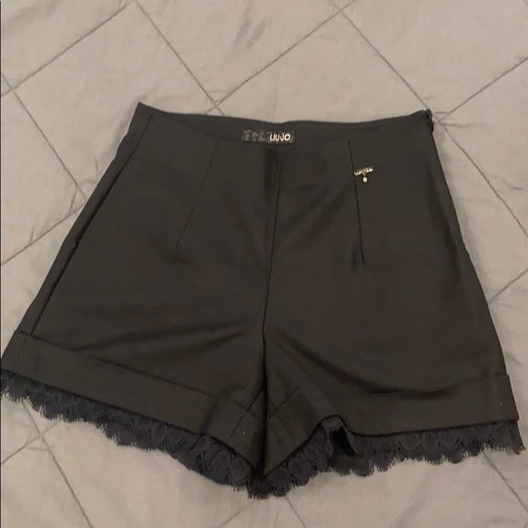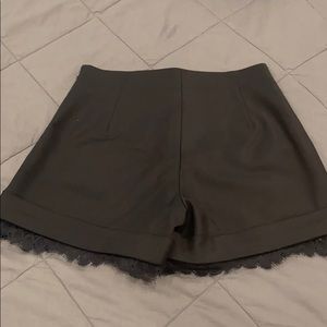 Beautiful and unique black shorts with lace detail. They have a zip on the side.