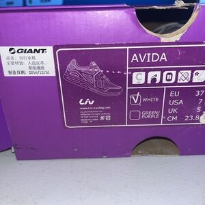 Liv Avida Indoor Cycling Shoe Spin. White. Size 7 US, 37 EU. 2 Bolt Cleat