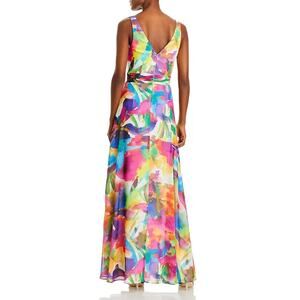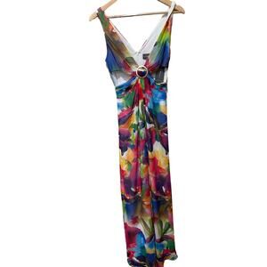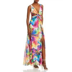Liv Foster Abstract-Print Deep V-Neck Cutout Gown Size 0