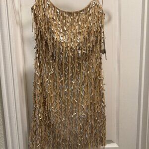 Liv Foster Gold Beaded Scoop Neck Mini Dress Size 6. Fits true to size. NEW WITH TAGS.