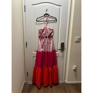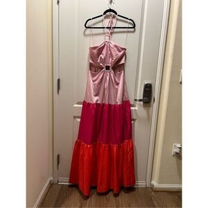 Liv Foster Liv Foster Taffeta Cut-Out Tiered Halter Evening Gown Pink size 6 NWT