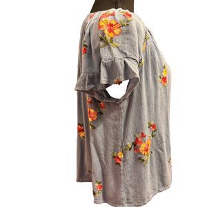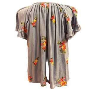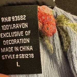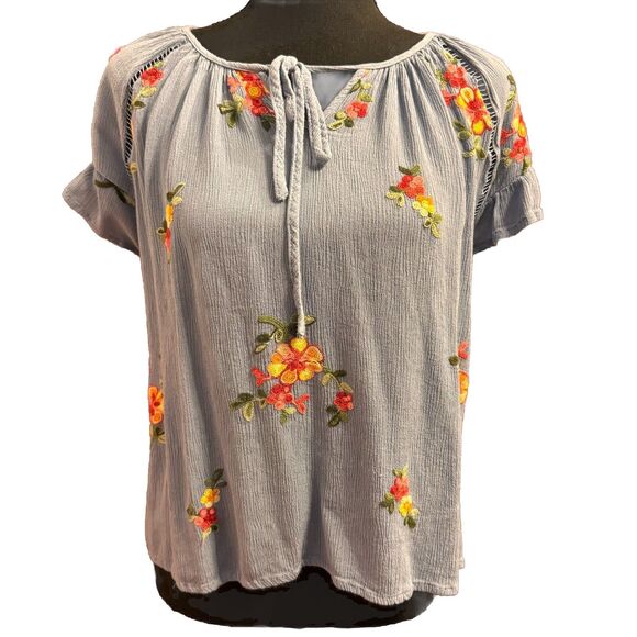 Liv Los Angeles Top L Womens Blue Embroidered Blouse Cottagecore Prairie Beach. Condition is Pre-owned, but very good.