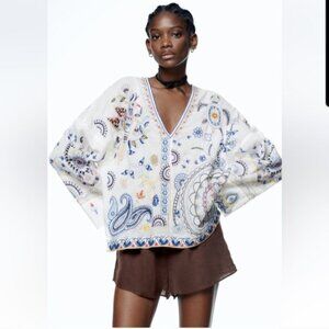 tags: boho top, embroidered blouse, artistic embroidery, casual chic, unique design