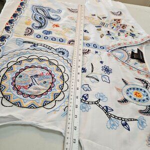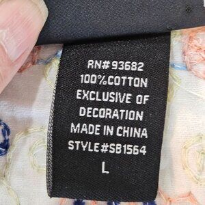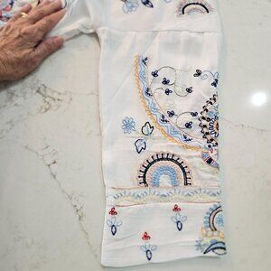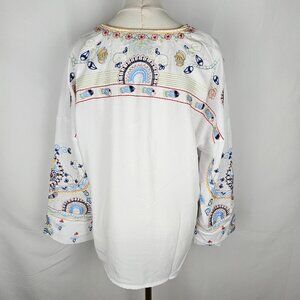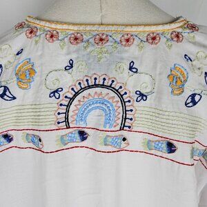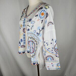 Liv Los Angeles Top Large White Embroidered Boho Floral Turtles Birds