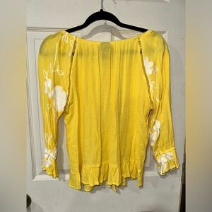 Liv Los Angeles Yellow Anthropologie Embroidered Floral Top