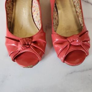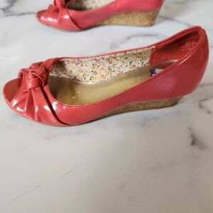 Liv & Maddie girls patent glossy wedge heels peep toe size 1 youth
