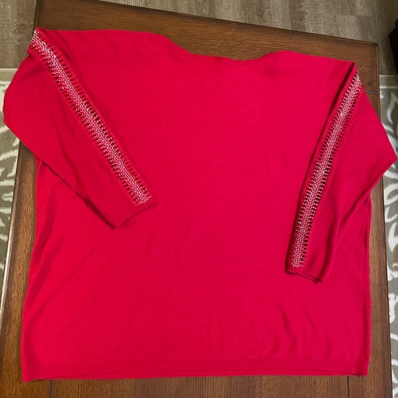 Liv Milano Date Night Bling Sweater. XXL. Red. Boat neck