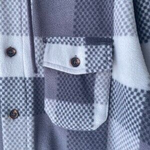 Comfy fleece shirt jacket with a hood! It has microfleece material and a cool, relaxed look that you can add to any outfit. Two front pockets. Excellent used condition. Size L.