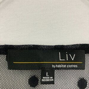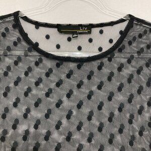 Liv by Habitat Large Black Polka Dot Mesh Long Sleeve Blouse Romantic Evening