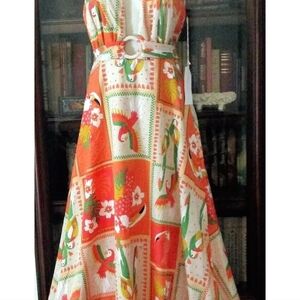 Embrace summer vibes with this vibrant orange halter dress. Perfect for any occasion, this dress features a lively pattern that stands out. Ideal for adding a pop of color to your wardrobe.